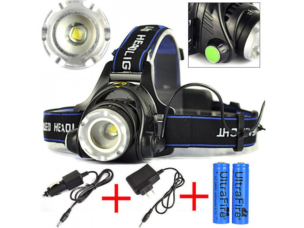 GNT Čelovka CREE XM-L T6 ZOOM + 2x akumulátor