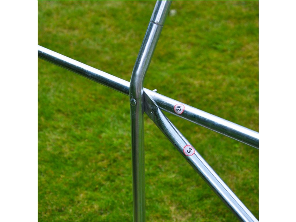 - Konstrukce z ocelových trubek s pozinkovanou úpravou o Ø 25 mm a tloušťkou stěny 0,7-0,9 mm;