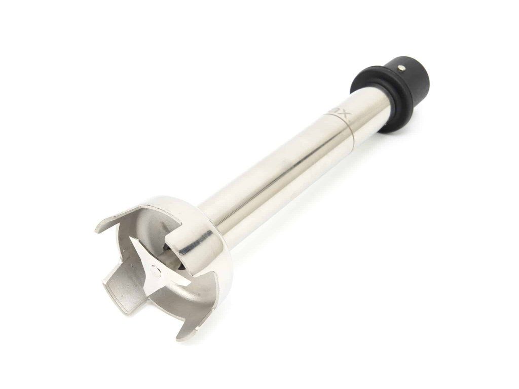 Hřídel, která je součástí standardní výbavy mixéru, je vybavena ostrými ocelovými noži. Můžete si také objednat nástavec se dvěma malými metličkami například na šlehání smetany. Tyčový mixér má navíc ventilovaný motor s tepelnou ochranou proti přetížení. Díky spojkám odolným proti opotřebení v tyčovém i motorovém bloku je výměna nástavců velmi rychlá. Hřídel z nerezové oceli je vybavena dvojitým ložiskem vnitřní hřídele a krytem nože. Přepínač nastavuje rychlost pro optimální výsledky šlehání a míchání.