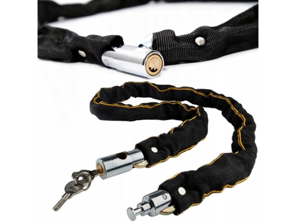 Bezpečnostní řetězový zámek vyrobený z tvrzené oceli s nylonovým opletením. Vhodný pro zajištění jízdních kol a motocyklů.. Díky opletení se s ním snadněji manipuluje a zároveň je lépe chráněn lak vašeho dopravního prostředku.